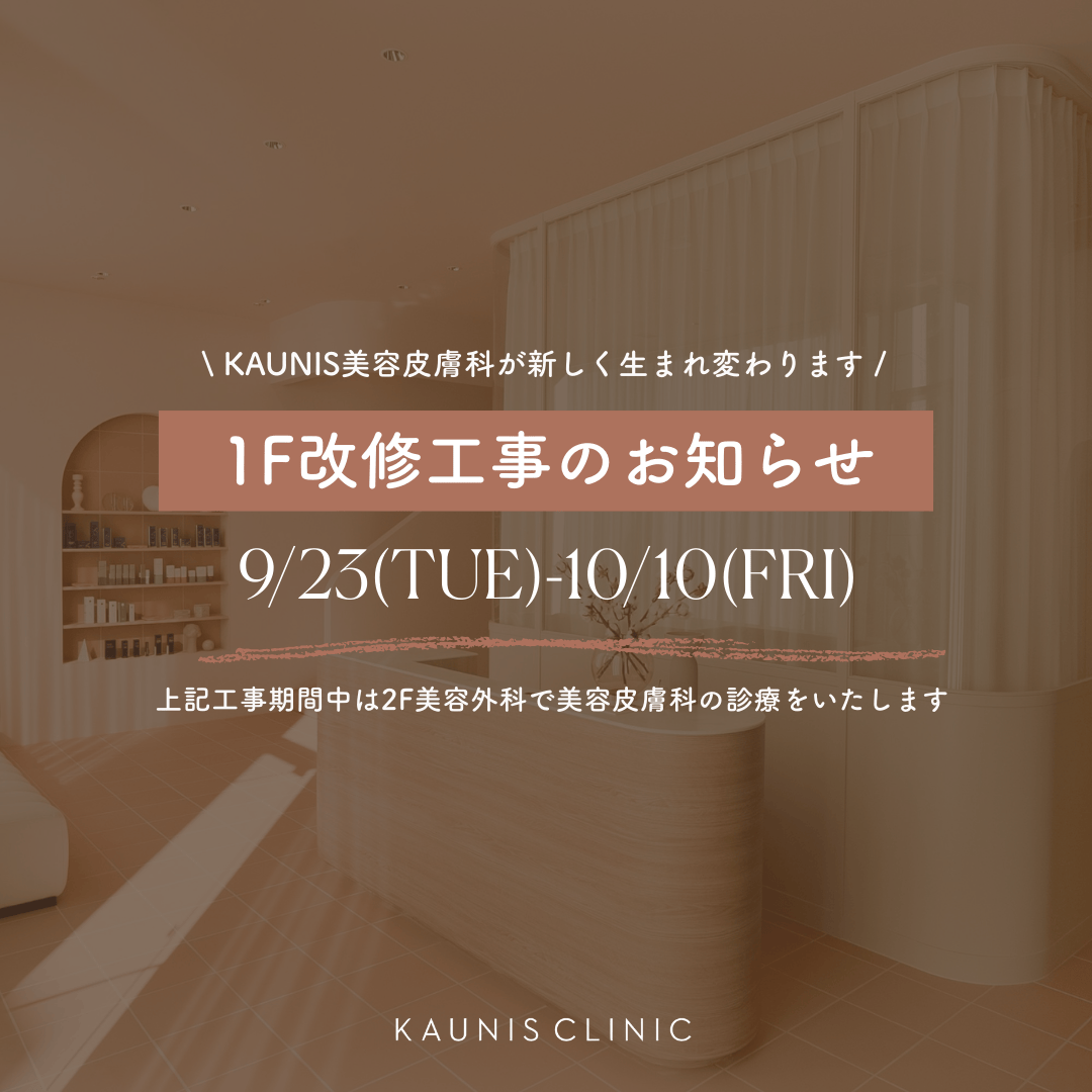 この度、1FKAUNIS美容皮膚科は院内改修工事を行い、新たに生まれ変わります。