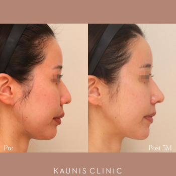 全体のバランスをさらに美しく(高野、本山担当コラボモニター様)【鼻中隔延長、整鼻術、鼻柱下降、鼻翼基部増大(粉砕肋軟骨移植)、鼻翼縮小(内側)、フェイスライン脂肪吸引、脂肪注入(前額、頬、マリオネット、顎)、糸リフト 手術後1か月、2週、1週】