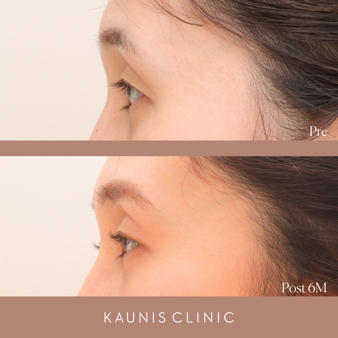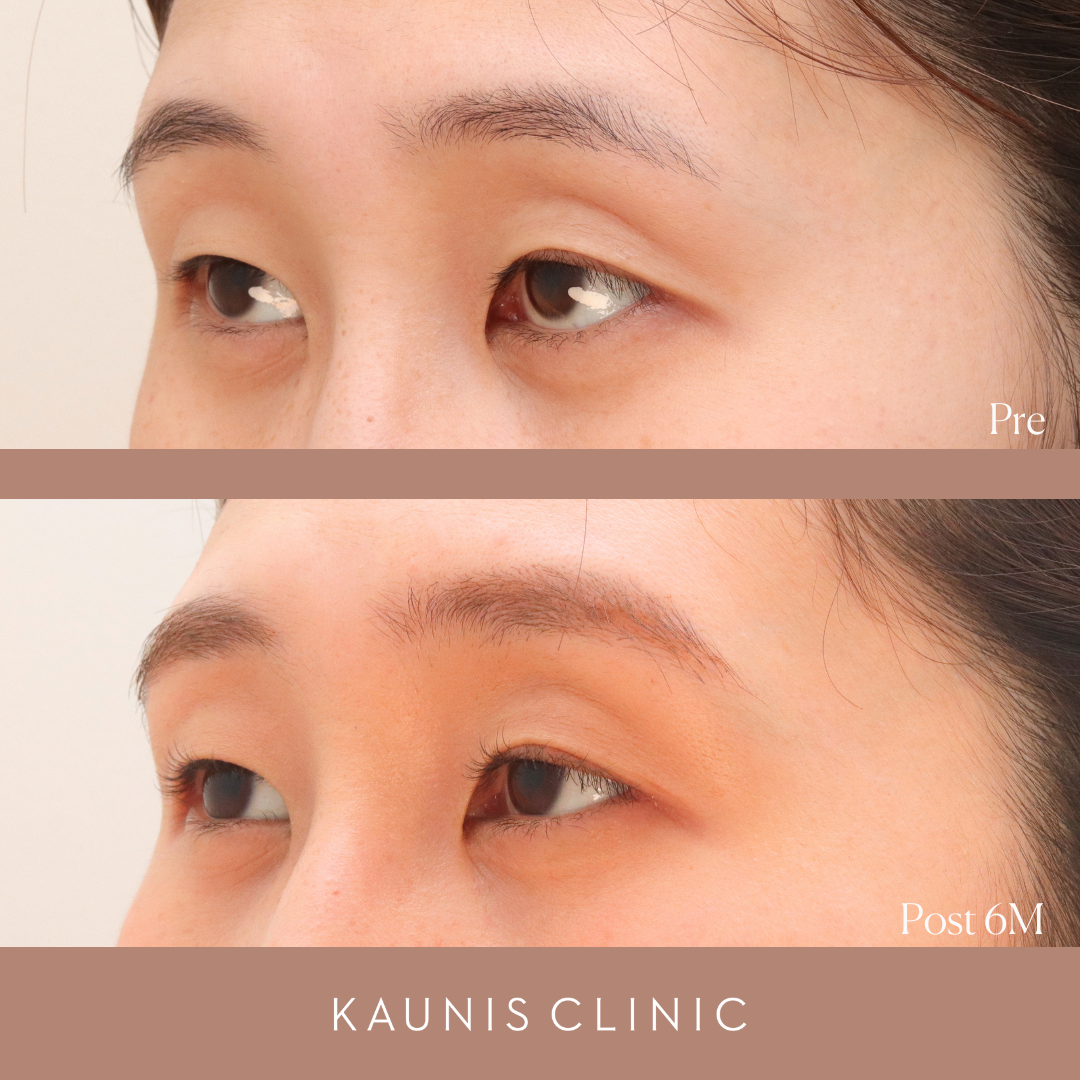 他院でくま治療(下眼瞼脱脂)を受けていらっしゃいましたが、術後、下まぶたの位置が下がってしまい、元の自然な位置に戻したいとご来院されました