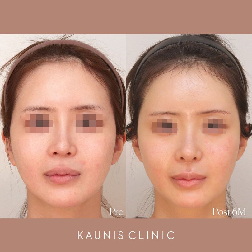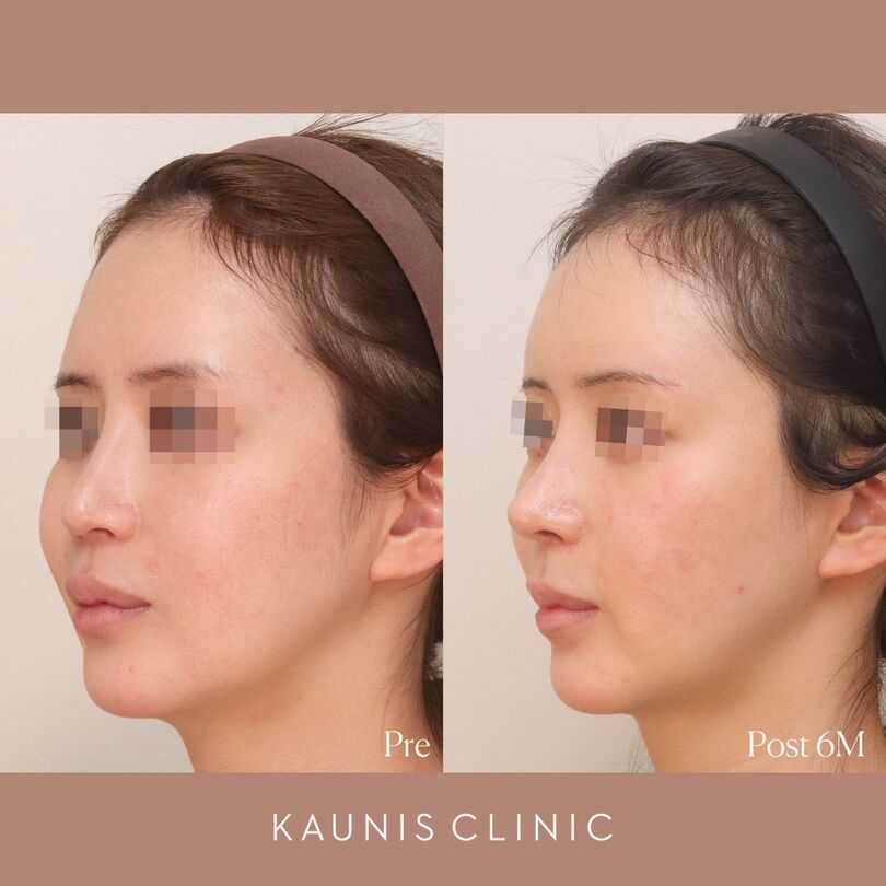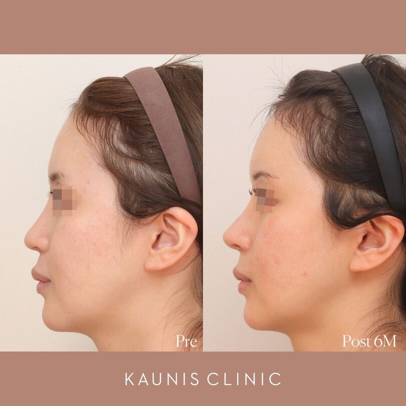 鼻先だけでなく、鼻柱基部を前方に移動させ(猫手術)、鼻翼基部も奥から持ち上げることで、さらに中顔面の立体感を出しました