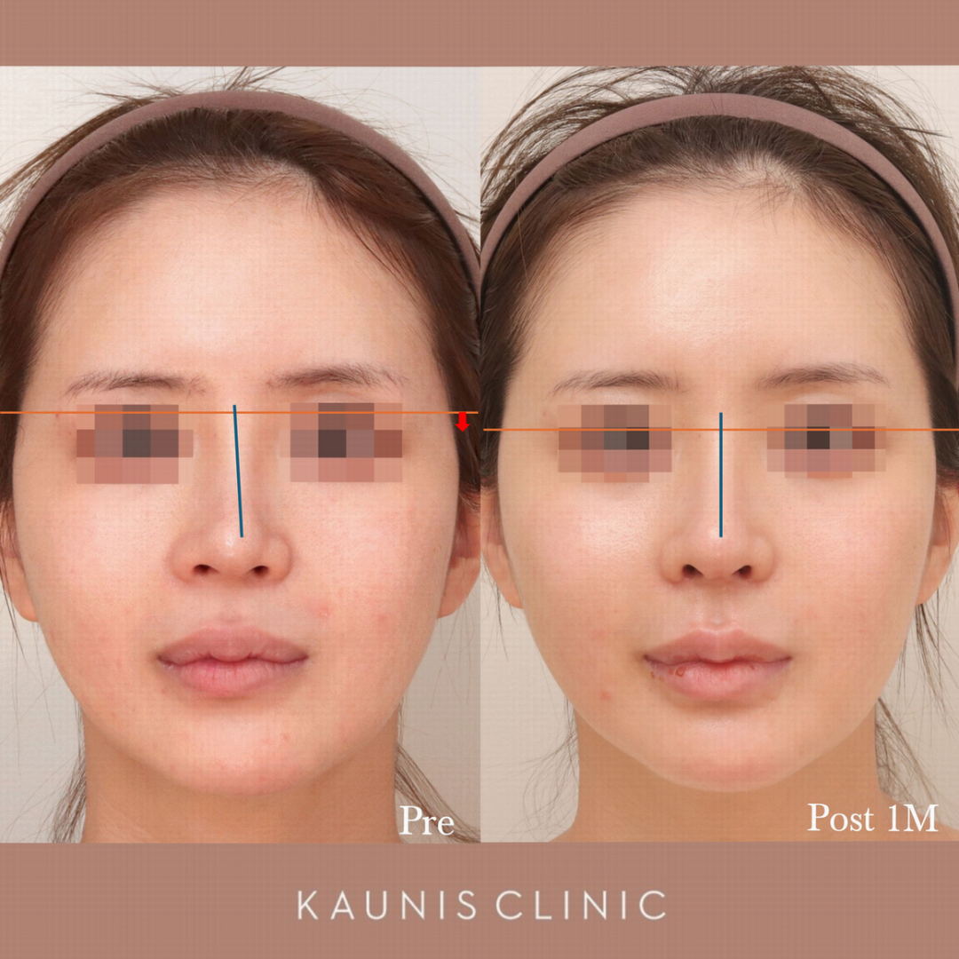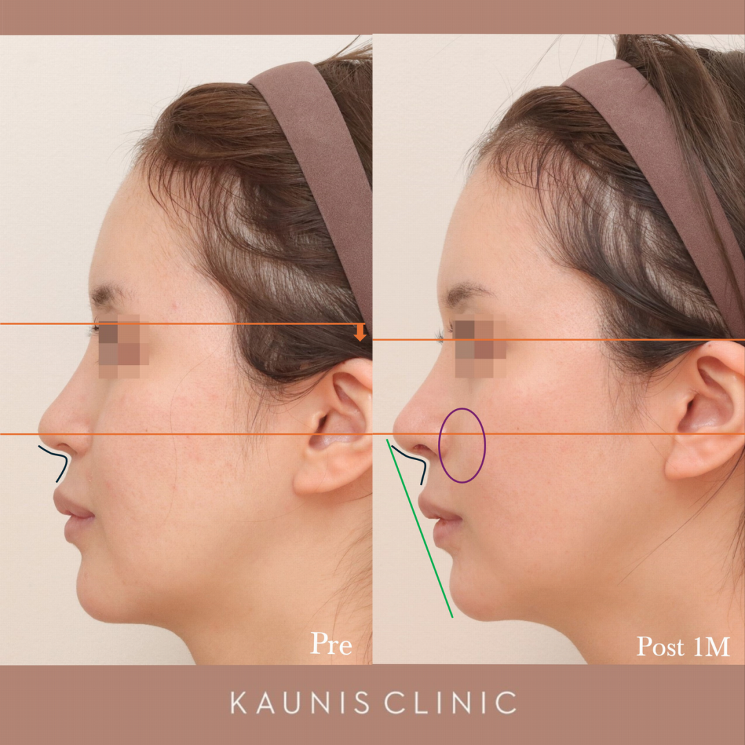 鼻根の位置を低く調整することで、お鼻を短くしました。
