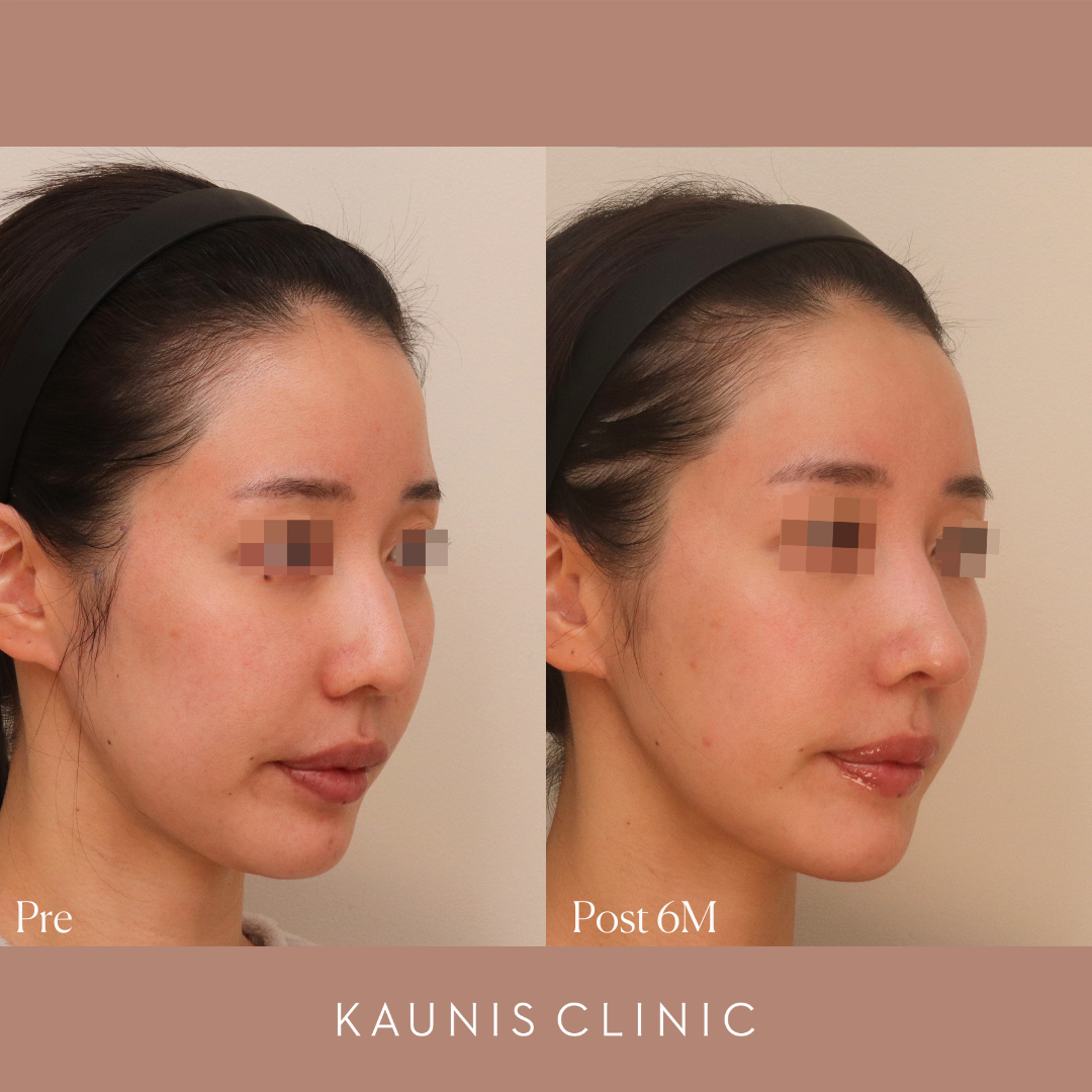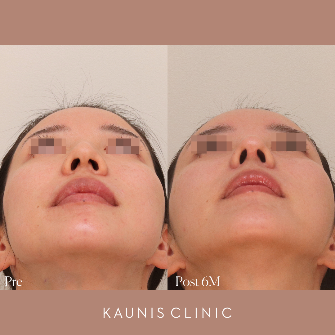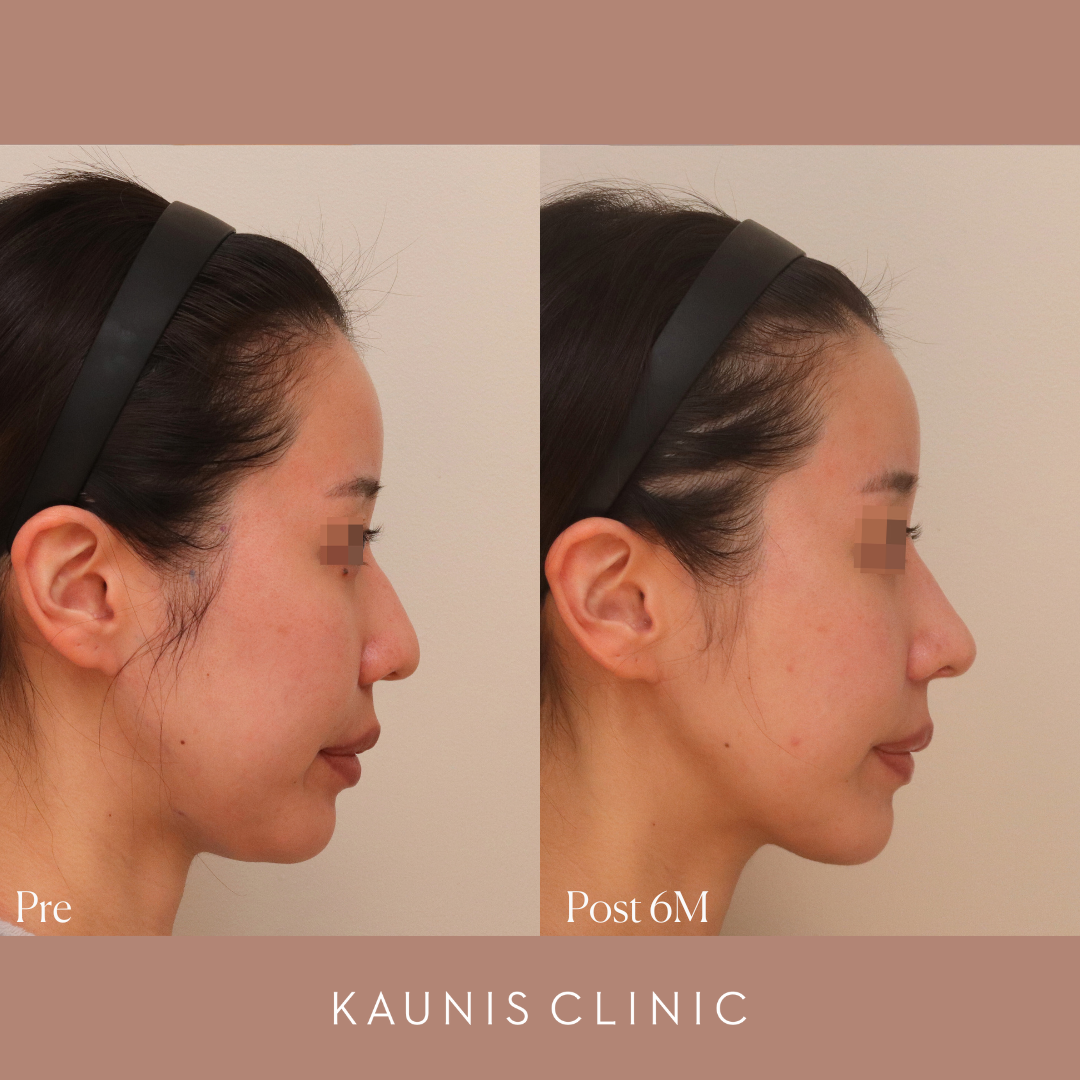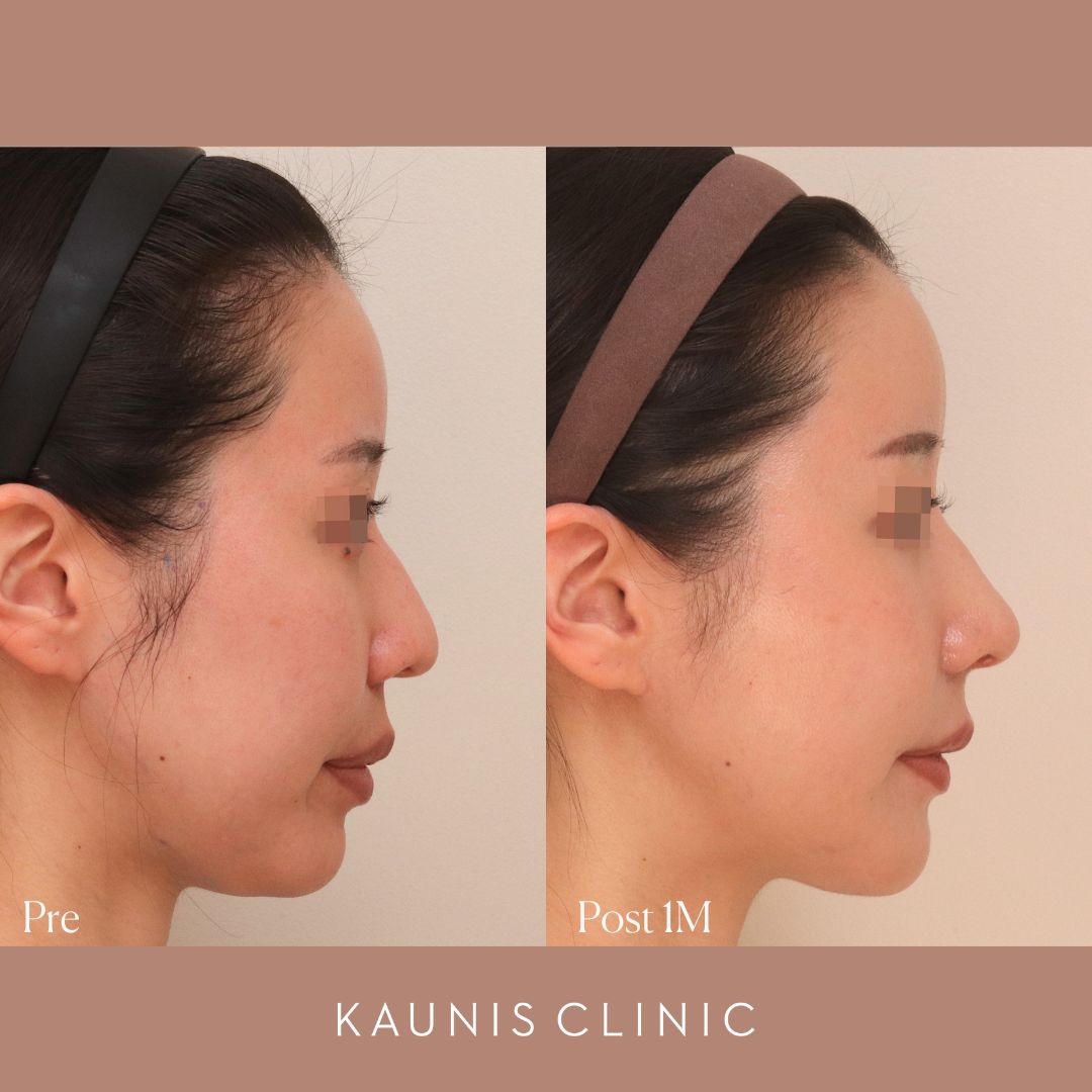 鼻先を高くするとともに、鼻柱基部も前方へ移動させ、ハンプを調整することで鼻先が下がっている印象がなくなりました。