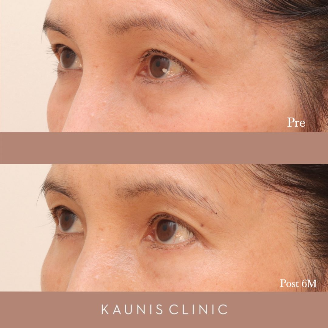 皮膚のたるみ、小じわがあり、移動できる眼窩脂肪の量がある方は、皮膚を切開するハムラ法の良い適応です、