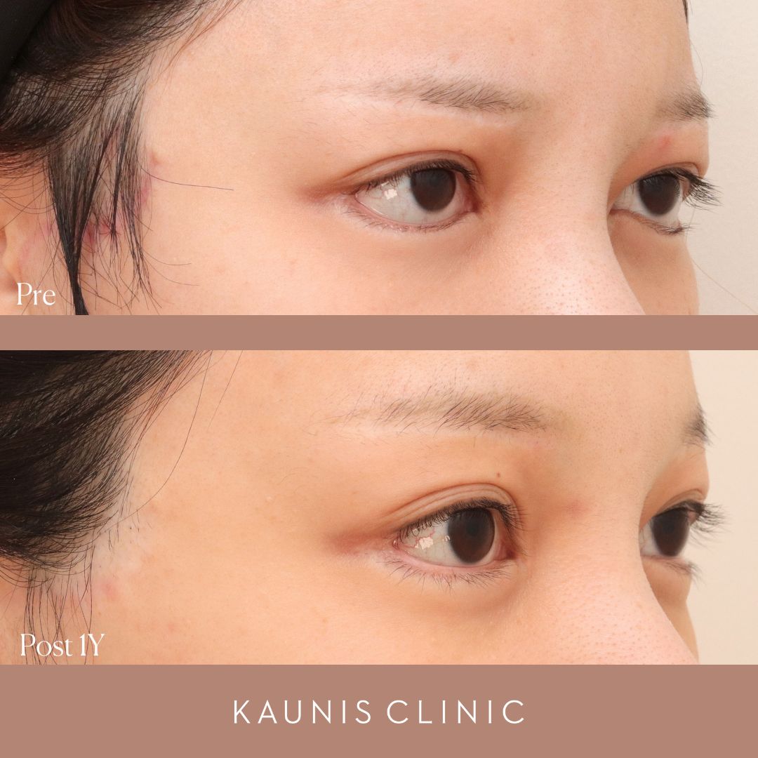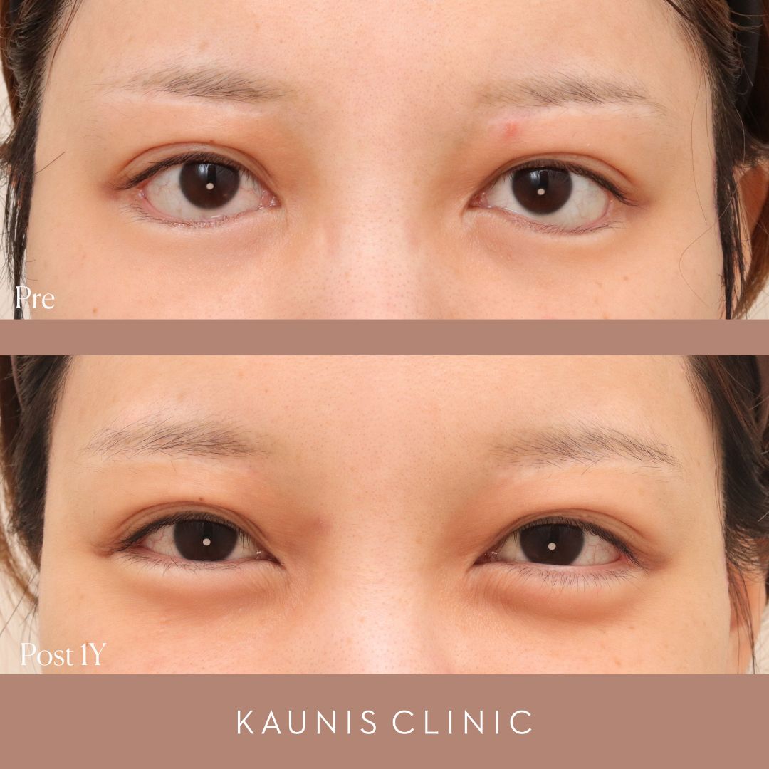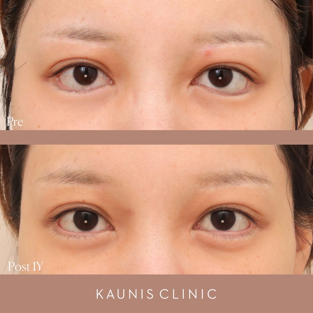 下眼瞼修正、目尻切開修正 手術後1年、6か月、3か月、1か月、1週間