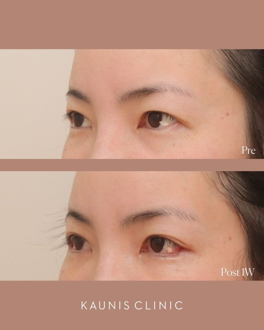 目の外側、横の白目を自然に大きくする手術を行いました