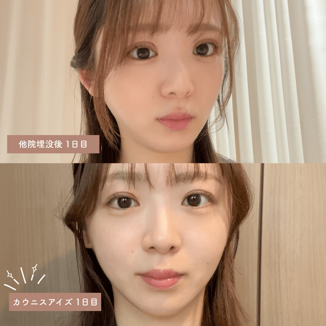 ダウンタイムの様子を他院で受けた時と比較してみたので二重埋没をご検討されている方は是非参考にしてみてください。