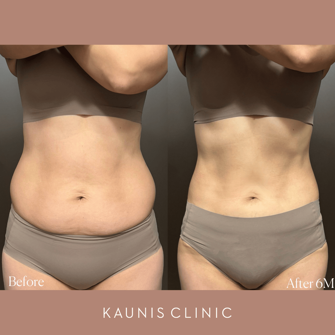 腹部脂肪吸引(腹筋・下腹部・ウエスト)で術後は、お腹の浮き輪がなくなり、こんなにスッキリ!半年経った経過も、ほっそりしたお腹を保てています。