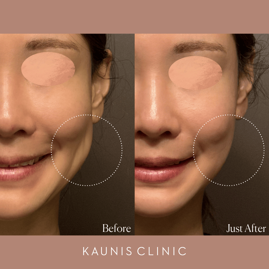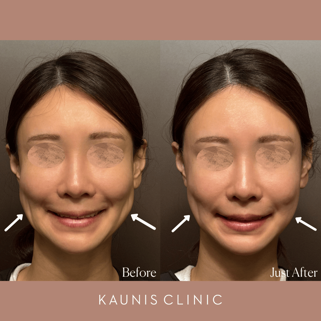 笑った時の頬の膨らみが気になっていたお客さま。バッカルファット除去でもっこり感がなくなり、スッキリ洗練された印象に✨