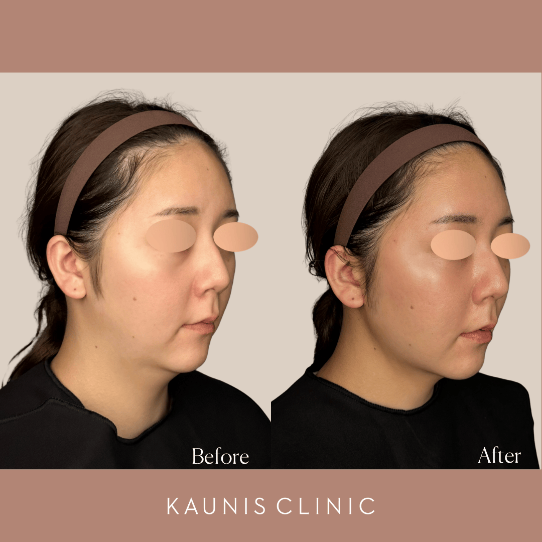 斜めから見ても輪郭がはっきりし、顎下のもたつきもなくなりEラインが整ったのがわかります。